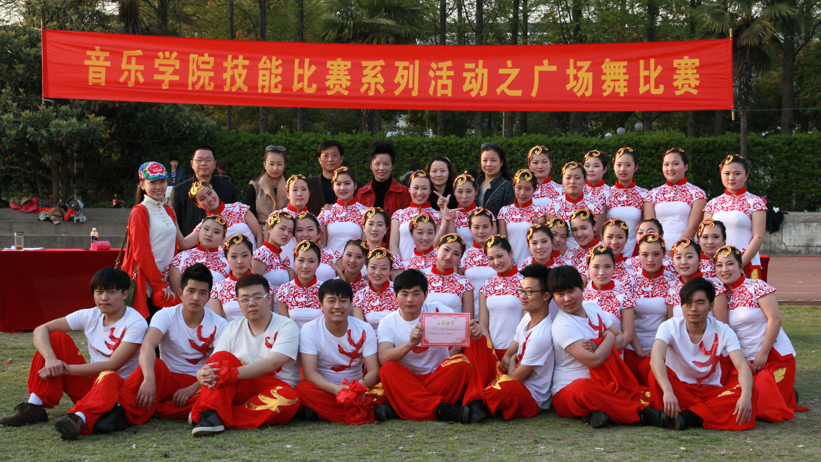 “艰苦奋斗辛勤劳动幸福花才红,好逸恶劳骄奢淫逸人生一场空,团结互助诚实守信留下好名声,见利忘义损人利己必定害无穷……”伴随着节奏明快的歌声,音乐学院专业技能比赛之广场舞比赛于4月11日,在春晖校区田径场拉开了帷幕。音乐学院在校8个班级的全体同学参与了比赛。校领导张曙光到场观看。