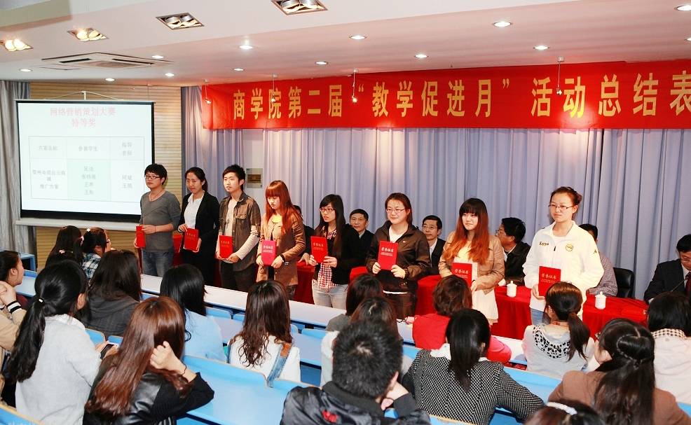 5月16日下午,商学院在春晖校区阶梯教室隆重举行第二届“教学促进月”活动总结表彰大会。校党委委员、副校长邓友祥,教务处处长王彬、督导室主任邹跃、学工处副处长唐帅等出席会议。会议由商学院院长蒋成忠主持。