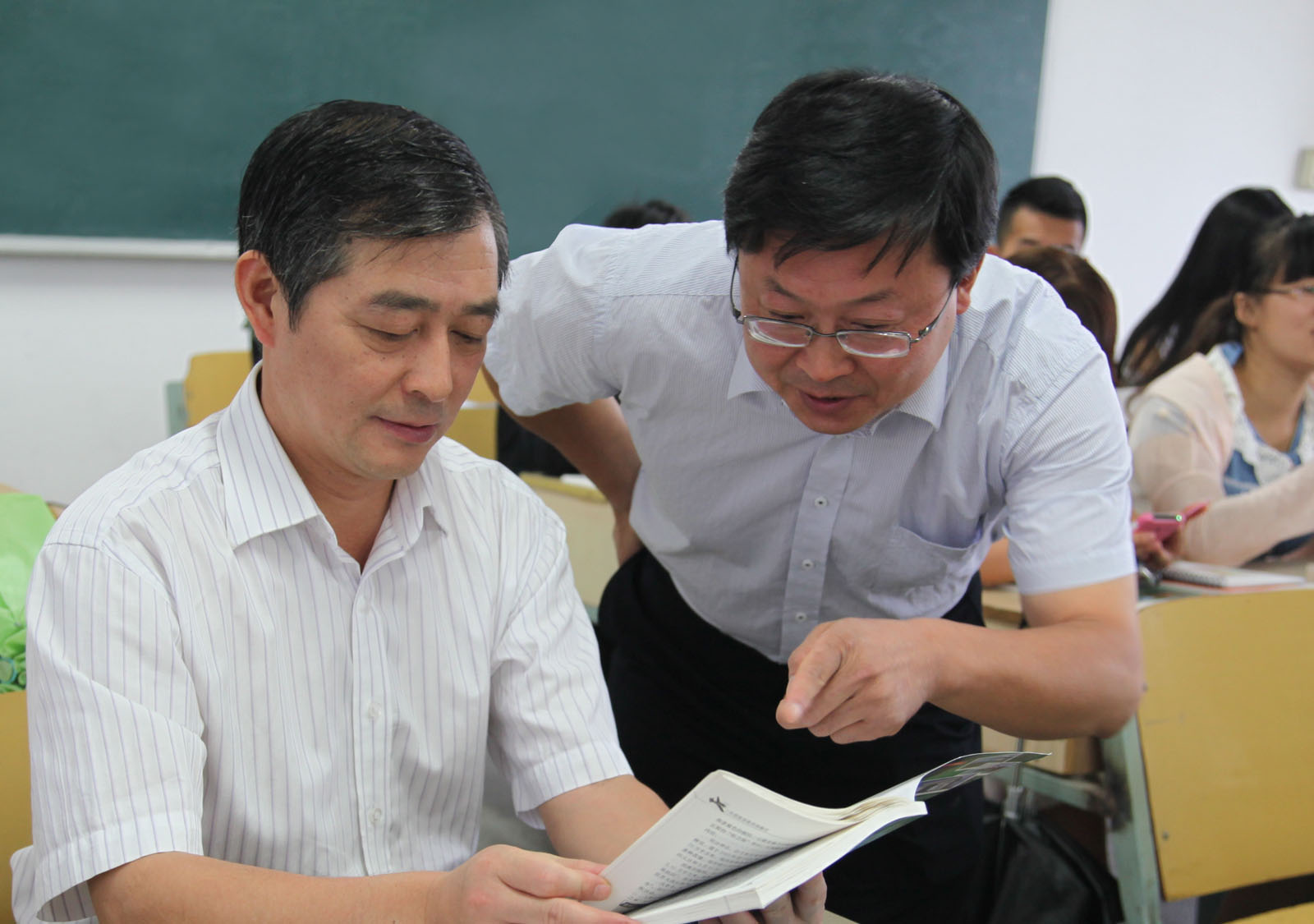 随后,校领导分别走进随机选择的教室,听新学期的第一堂课。他们坐在学生中间,聚精会神地听讲,认认真真地记笔记。院党委书记李久生教授走进旅游学院于桂林老师的课堂,并利用上课前的间隙,就相关专业知识与同学们进行了交流。院长温潘亚教授听了人文学院周海霞老师的《外国文学》课程,并对教学效果表示满意。