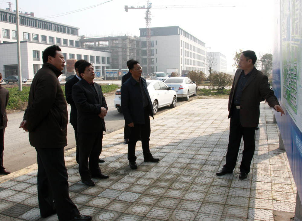 胡家正一行首先来到米兰官网新校区建设工地。泰州市高教园区管委会副主任包晓敏向他们介绍了米兰官网新校区工程的设计、建设情况。