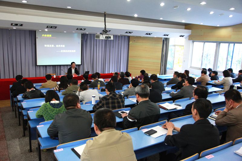 成长春书记以《新形势下地方本科高校发展战略》为主题,结合盐城师范学院升本、迎接本科教学工作水平评估、形成自身办学特色过程的经验与做法,从转型发展、追求卓越——发展的应然选择,内涵发展、提升战略——发展的永恒主题,特色发展、铸造品牌——发展的必由之路三个方面,全面系统地阐述了新建地方本科高校转型发展的时代背景和路径选择。成书记指出作为新建地方本科高校,要完善大学顶层设计,构建应用型人才培养体系和政产学研合作机制,注重学科专业一体化建设,创新体制机制,推进现代治理结构和治理能力建设,找准突破口,错位竞争,特色发展。