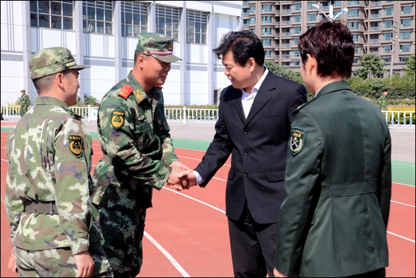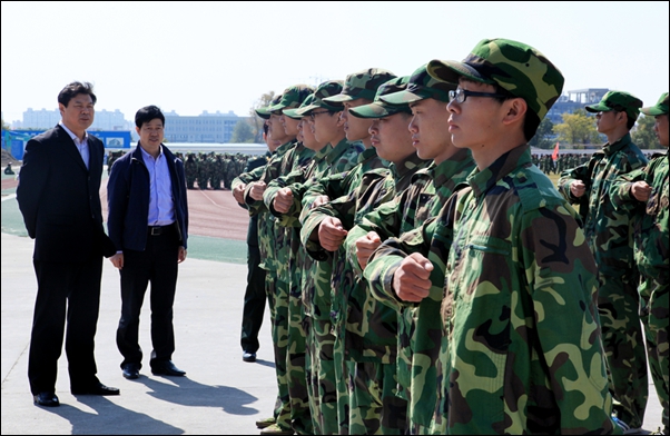 阳光明媚,秋风送爽。10月14日上午,院长温潘亚、副院长田浩在校人武部副部长和武警支队士官的陪同下视察了米兰官网新生的军训工作。