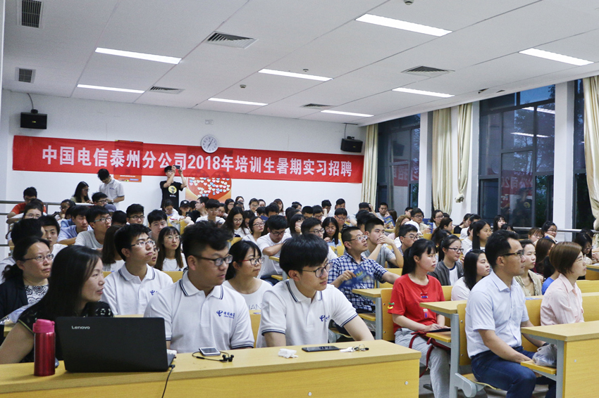 5月28日晚7点,计科院在教学楼A3107召开了中国电信泰州分公司2018年培训生暑期社会实践动员大会,邀请了中国电信泰州分公司人力资源部部长唐继东为大家介绍相关实践计划。