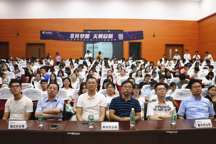 宣讲会现场,中国电信江苏省公司各地区负责人向参会毕业生介绍了企业文化、产业布局、人才需求和福利待遇。中国电信集团有限公司主要经营固定电话、移动通讯、卫星通讯、互联网接入及应用等综合服务,企业的蓬勃发展吸引了在座的毕业生,现场共有30位应届毕业生达成就业意向。