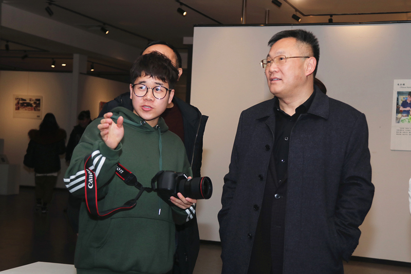 12月26日下午两点半,美术学院举办《影像编辑》专业课程教学成果展暨第二届“传承”家乡民俗影像记录活动开幕式。校党委书记赵茂程,校党委副书记邓友祥,校党委常委、宣传部部长吕林,教务处处长杨俊林,美术学院相关负责人和师生代表等出席开幕式并观展。