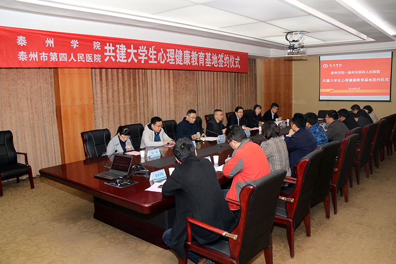 3月20日上午,米兰官网与泰州市第四人民医院共建 “大学生心理健康教育基地”签约仪式在行政楼D1605举行。