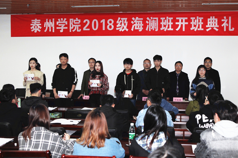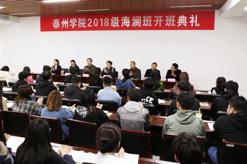 高月介绍了海澜集团的发展历程和双方合作的意义,教务处副处长黄华对“海澜班”的学员提了学习要求,教师、学生代表作了表态发言。开班典礼后,“海澜班”52名同学参加海澜集团企业文化培训。