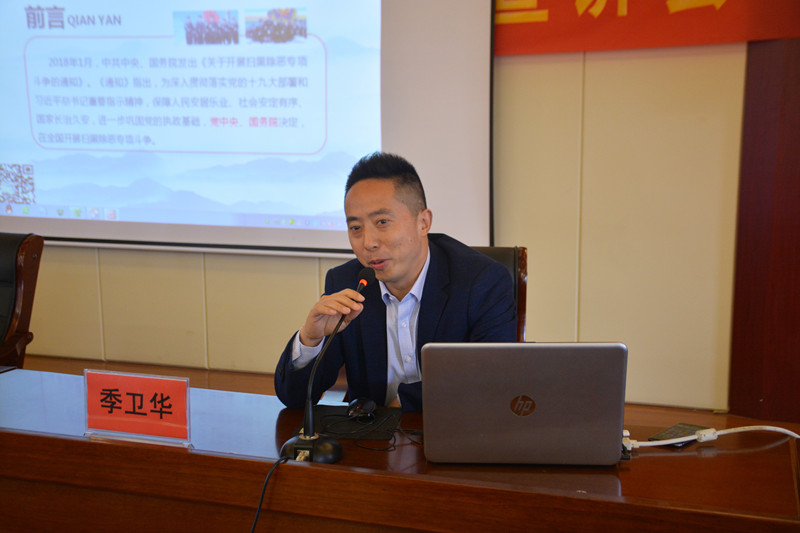 在宣讲会上,米兰官网人文学院教师季卫华博士作了《开展扫黑除恶专项斗争,创造安全稳定社会环境》为主题的宣讲。季卫华老师结合法律知识和现实案例,就开展扫黑除恶专项斗争的重大意义、“打黑”变“扫黑”的深意、认定黑恶势力的主要标准、重点打击的十二种黑恶势力等内容,对党员干部作了十分生动精彩的讲解。