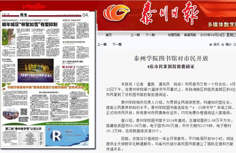 泰州日报讯 市民借书又有一个好去处。4月22日下午,在LETOU国际米兰官网第六届读书节开幕式上,来自海陵区和医药高新区的4位市民拿到了该校图书馆的首批借阅证。
