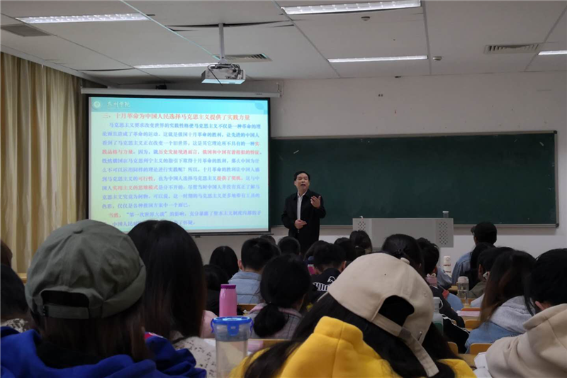 周建超围绕“历史和人民为什么选择了马克思主义”这一理论专题,分析了无产阶级是指导中国变革的先进力量,马克思主义是指引中国前进的科学理论,中国道路是实现民族振兴的正确路径,改革开放是加快中国现代化发展的强大动力;论证了马克思主义凭借自身的科学性和真理性从成为指引中国近代社会发展的行动指南。