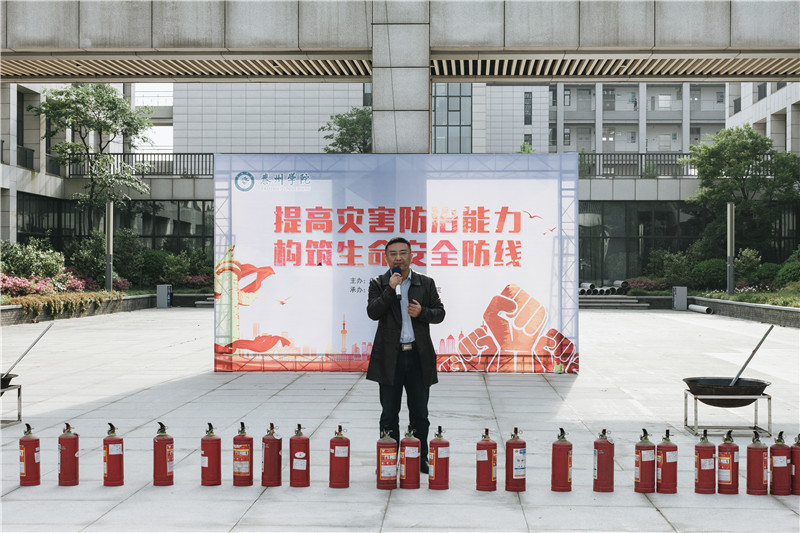 地震疏散演练结束后,保卫处处长陈根怀宣讲了有关地震疏散的基本常识和要点,分析了导致火灾的各种隐患因素以及有效防止火灾发生、蔓延的方法措施。同时,他还详细介绍了灭火器的构造和使用要领,并请师生代表进行实操练习,熟练掌握使用灭火器灭火的方法步骤。