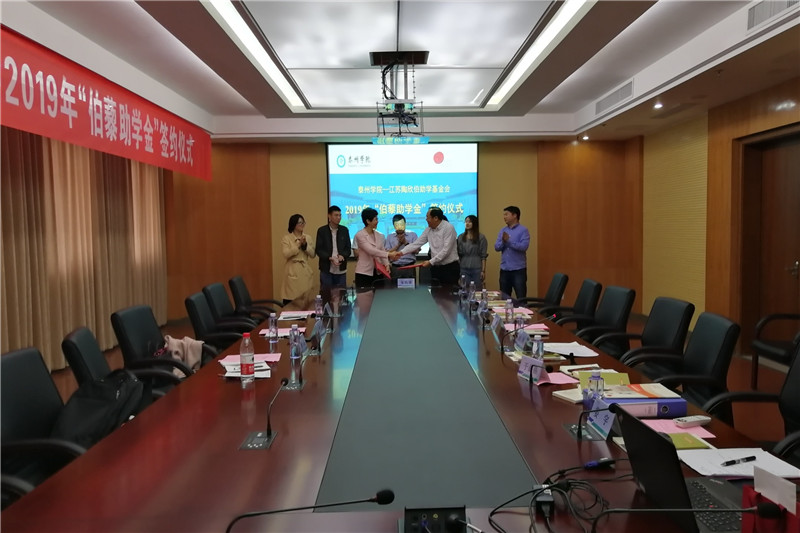 徐向明与李建伟分别代表LETOU国际米兰官网、基金会共同签订了2019年《江苏陶欣伯助学基金会资助协议书》。(学工处 王硕)