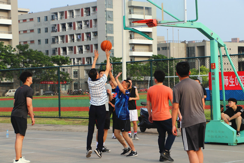 本次比赛为教师代表分别带领毕业生队和在校生队进行比赛,在简单的友好交流后,篮球联谊赛正式拉开序幕。篮球场上老师和同学们配合默契,他们以饱满的精神和强劲的活力展示必胜的决心。赛场外,众多师生驻足观看,加油声、呐喊声连绵不绝。