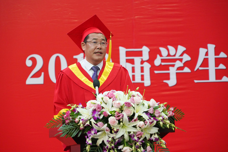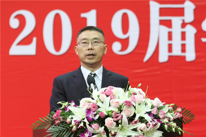 校长徐向明以《不负青春好韶光 争做硬核追梦人》为题发表了热情洋溢的讲话。他语重心长地寄语毕业生们:淬炼软骨,铸就硬核追梦之志;坚守理想,永葆硬核追梦之心;不懈奋斗,践行硬核追梦之道。他希望毕业生们在新的起点保持蓬勃向上、开拓创新的朝气;保持不甘人后、奋勇争先的锐气;保持披荆斩棘、敢于碰硬的勇气,不忘初心、逐梦奔跑,为“两个一百年”奋斗目标的实现贡献自己的力量。徐向明还向毕业生代表赠送校友图书借阅卡样卡,希望同学们终身学习。