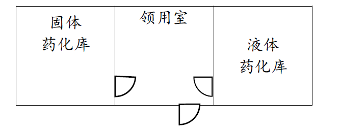 (1)该药化仓库位系单层建筑,无地下室或半地下室;建筑隔成三个防火分区,每间8m2左右,总面积25-30m2,具体布局如下(位置以现场勘查为准):