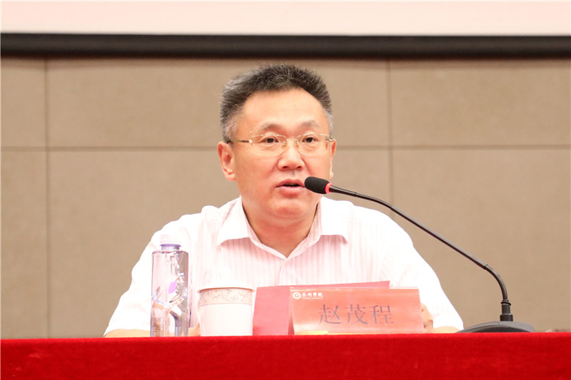 赵茂程在讲话中强调,在积极筹备迎接2020年本科教学工作合格评估及师范专业认证工作的关键时期和重要节点,学校的建设、声誉、未来发展都需要依靠老师。他对全体教职工提出了“政治过硬、爱校敬业、锤炼本领、潜心育人”四个方面的要求,号召全校教职员工行动起来,以“功成不必在我”的精神境界和“功成必定有我”的历史担当,不忘初心、牢记使命,凝心铸师魂、立德育新人。