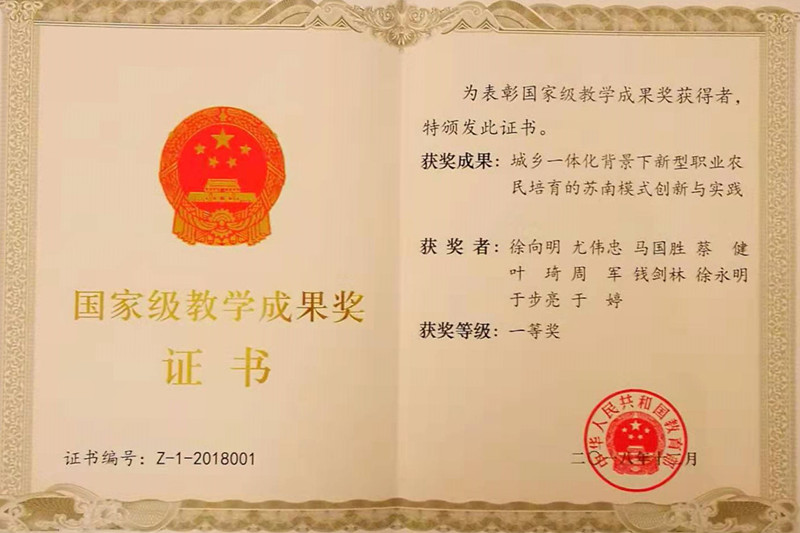 2019年9月10日,徐向明教授主持完成的“城乡一体化背景下新型职业农民培育的苏南模式创新与实践”项目在北京获颁国家级教学成果奖“一等奖”证书。