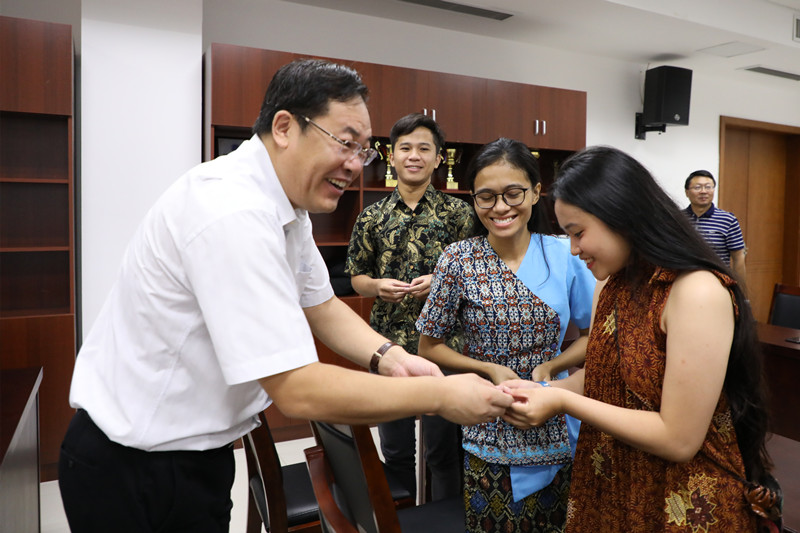 中秋节前夕,校党委书记赵茂程,党委副书记、校长徐向明来到经济与管理学院,慰问来自印尼的8名留学生。教务处、学生工作处、国际合作与交流处、经济与管理学院相关负责人参加慰问。