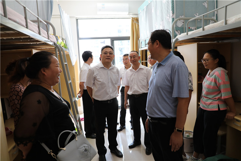 校党委书记赵茂程,党委副书记、校长徐向明等校领导及相关部门负责人来到报到现场看望新生和家长,并慰问了服务在迎新一线的学校工作人员。校领导还深入宿舍,与新入住的学生及家长进行交流。学生家长对学校二期工程的建设进度表示肯定,学生也很满意新宿舍的环境和设施,希望在这里度过愉快的四年。