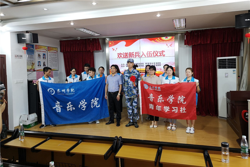 九月是新兵入伍的季节,9月18日上午,音乐学院青年学习社在团总支副书记郭蕾带领下,参加了党团共建单位——城南街道新莲花社区新时代文明实践站为2019年入伍新兵举行的欢送仪式。