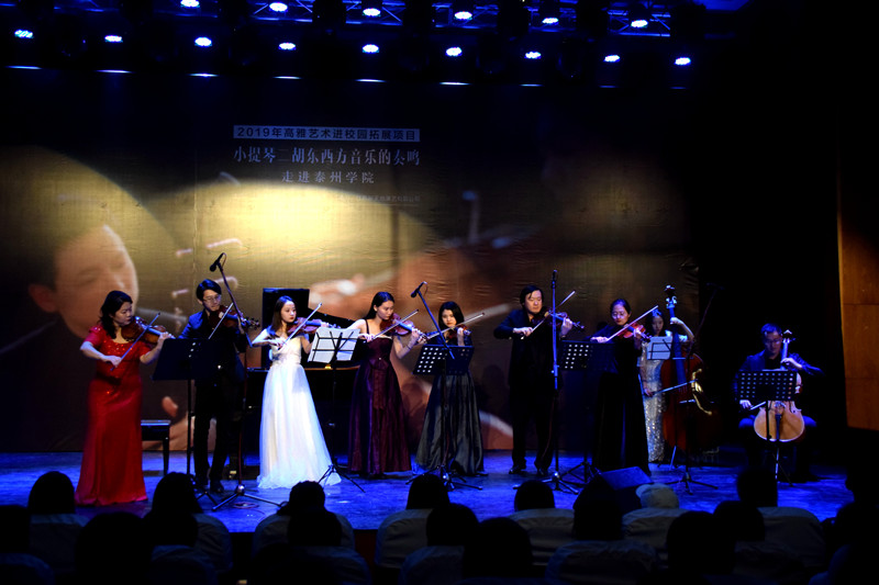此次来校表演的有二胡演奏家邓建栋老师、小提琴演奏家盛小华老师,著名旅德中提琴演奏家王洋老师和青年钢琴家马玉乔老师作为特邀嘉宾也参加了此次演出。