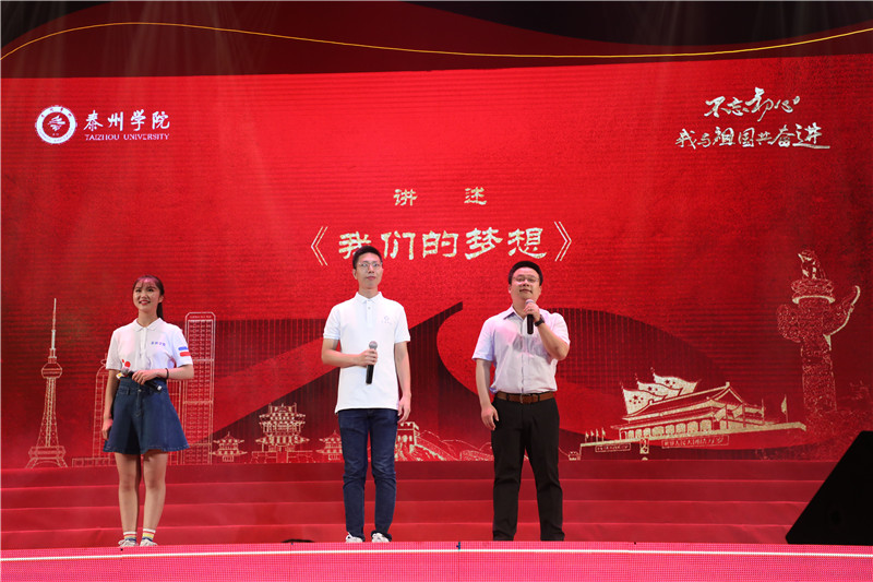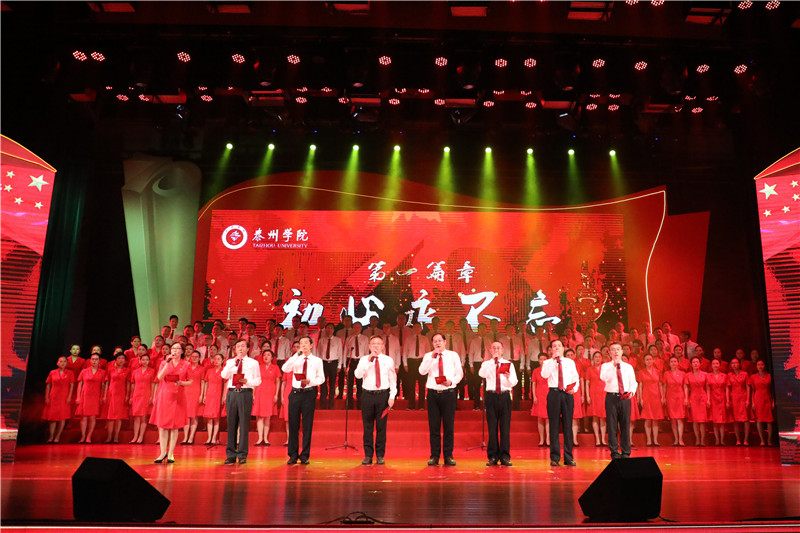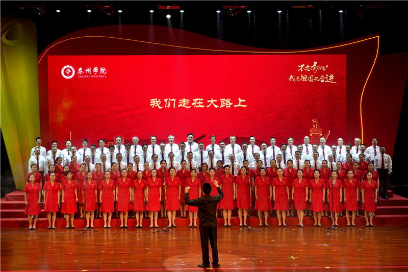 不忘初心,歌唱祖国。接着,歌舞《不忘初心》将主题活动推向高潮。然后,在学校星光合唱团的带领下,全场师生同唱《歌唱祖国》,红旗舞动,歌声激昂,新时代的梦想在每一个泰院人的心中回荡。