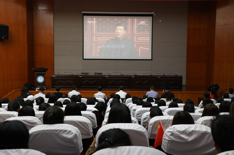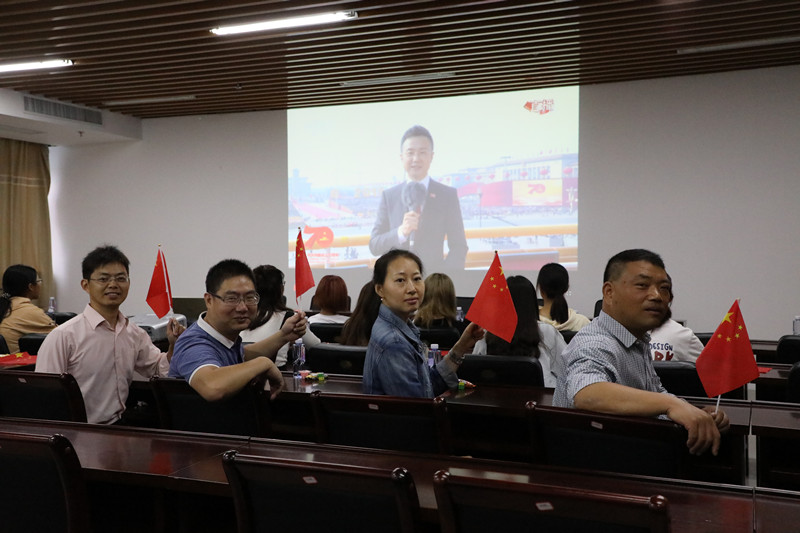 上午7:30,全体在校生集中在1216会议室和各二级学院会议室收看国庆庆典和阅兵式。校党委副书记邓友祥,宣传部、学工处等部门负责人,二级学院党总支书记、副书记、团总支书记和辅导员与同学们在一起收看,会场上不时响起热烈的掌声。