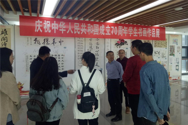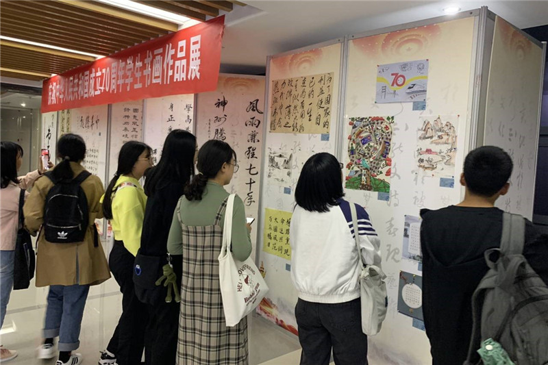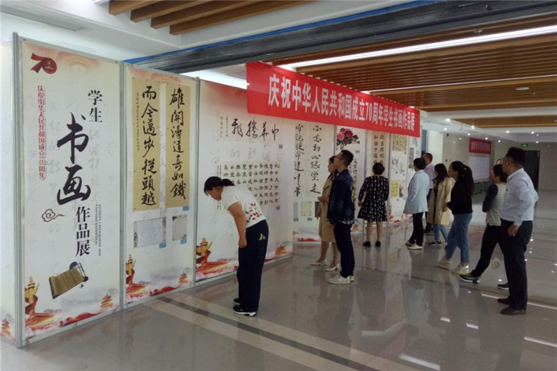 10月8日起,米兰官网在行政楼2楼中厅举办庆祝中华人民共和国成立70周年学生书画作品展,吸引众多师生驻足观赏。