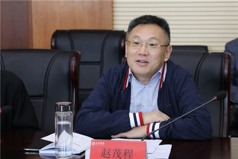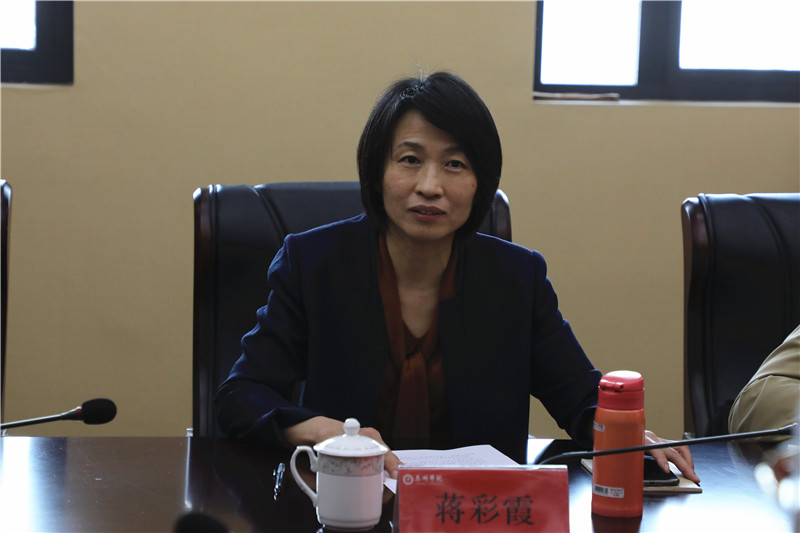 校党委书记赵茂程代表学校对蒋彩霞一行的莅临指导表示欢迎。他从历史沿革、人才培养、特色亮点等方面介绍了学校基本情况,围绕政治建设、制度建设、思想建设、队伍建设、组织建设、作风建设、纪律建设详细汇报了学校党委落实全面从严治党主体责任情况。