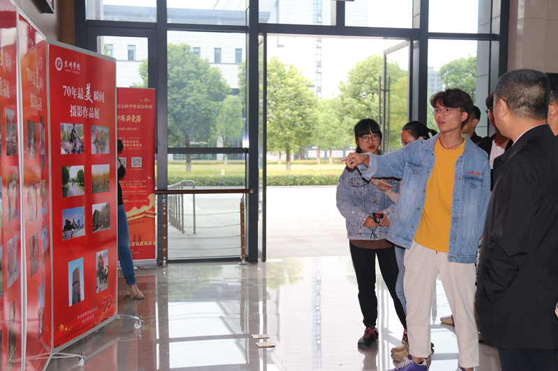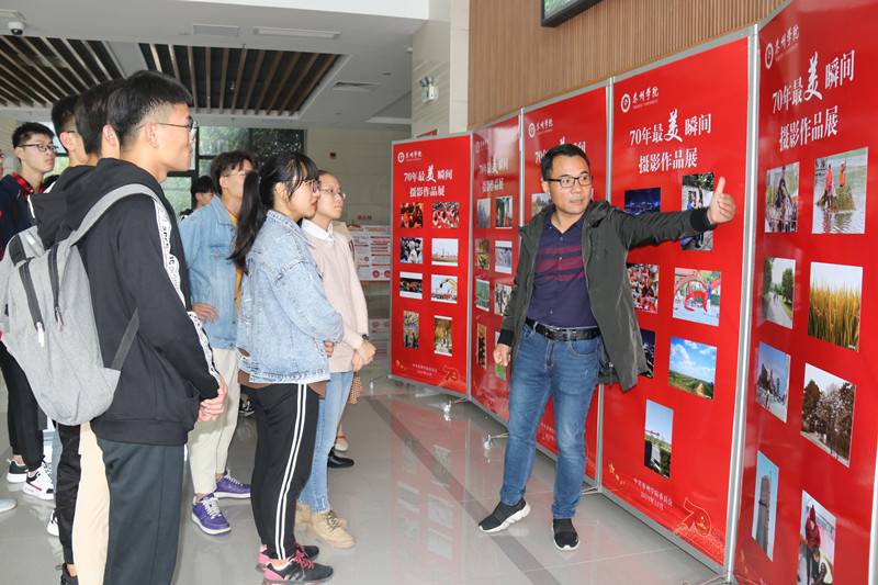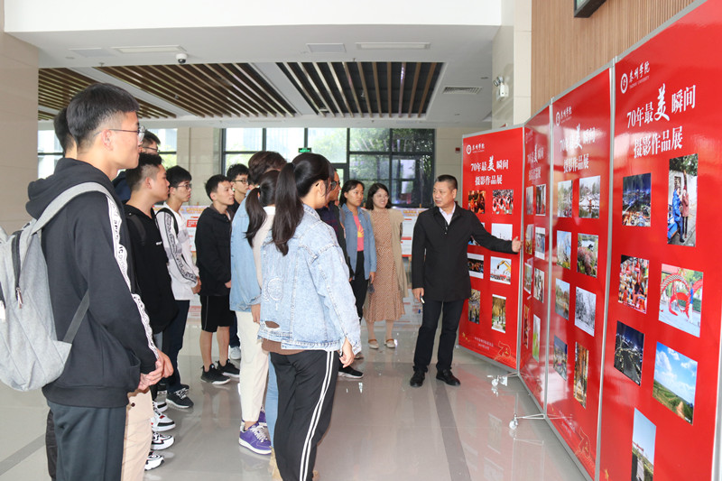 10月14日,“70年来最美瞬间”优秀摄影作品在行政楼大厅展出,吸引了大量师生驻足欣赏。