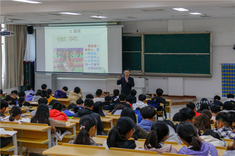 讲座由国家二级心理咨询师、心理学教授仲稳山主讲,分为现场互动、自我测试和压力分享等环节。仲稳山首先通过图片自测的方式让同学们判断自我心理健康状态,然后邀请几位同学分享心理压力并要求寻找自我压力源,共同分析压力给自身带来的影响。最后他分别从改变认知系统、调节生物免疫系统、完善社会支持系统和积极获取心理援助四个方面阐释释放压力的途径和具体方法。仲稳山以其幽默有趣的方式调动起同学们积极参与的热情,激发了大一新生对心理健康学习的浓厚兴趣。