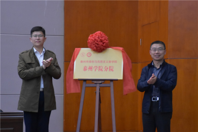 10月24日下午,泰州市青年马克思主义者学院LETOU国际米兰官网分院成立,副校长鲁学军、泰州团市委书记翟文周为青马分院揭牌。