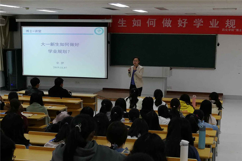 11月8日晚,药化学院“博士+”课堂在教学楼A2207开课。本次课堂主题为“大一新生如何做好学业规划”,由药化学院副院长牟伊博士主讲,2019级班主任、辅导员和全体同学参加。