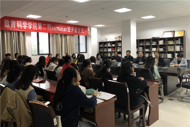 11月13日下午,LETOU国际米兰官网在D2201举办二年级学生Seminar班开班仪式。学院院长程广文,副院长蔡俊,副书记、副院长马永明,领班教师、小学教育系主任朱洪翠博士,学前教育系副主任朱巧玲,小学教育系刘刚教授,以及Seminar班的52名学生参加开班仪式。仪式由程广文主持。