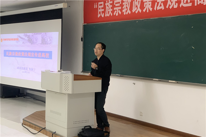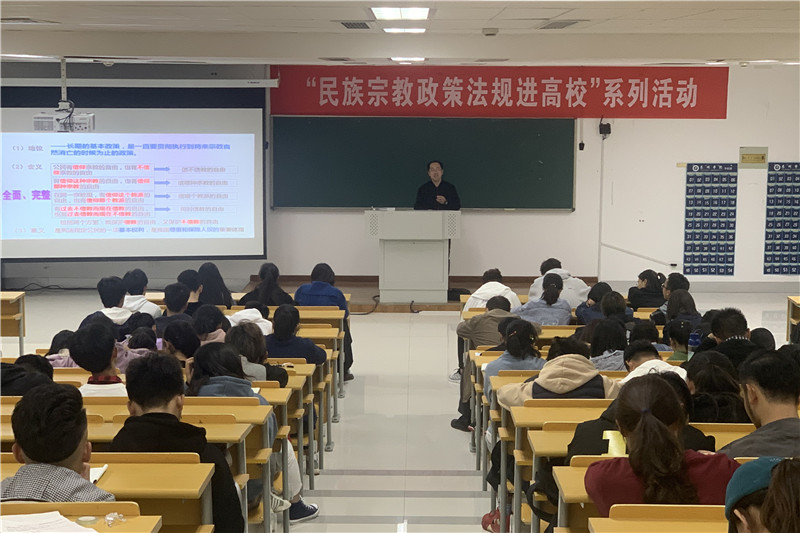 为深入学习贯彻习近平总书记关于民族宗教工作重要讲话精神,进一步深化泰院师生对党的民族宗教政策的认识,牢固树立正确的民族宗教观,11月13日,米兰官网在教学楼A2307举办“民族宗教政策法规进高校”专题讲座,学校邀请了泰州市民宗局政策法规处副处长张振宁作题为《我国的宗教政策》专题讲座。学校各二级学院学工书记、辅导员、学生共计200余人参加讲座。讲座由学工处副处长蒋凤锁主持。