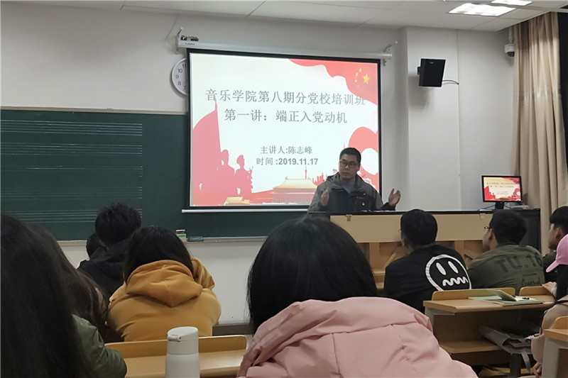 11月18日下午,音乐学院在艺术楼C2332举行了第八期分党校培训开班典礼。音乐学院党总支书记李中明,党总支副书记、副院长陈志峰,团总支副书记郭蕾参加了此次活动。
