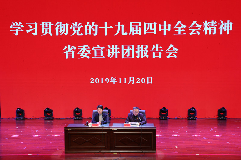 报告会上,常胜梅紧紧围绕习近平总书记在党的十九届四中全会上的重要讲话精神和全会通过的《决定》,深入阐释了党的十九届四中全会的重大意义,从坚持和完善中国特色社会主义制度、推进国家治理体系和治理能力现代化,是从党和国家事业发展全局和长远出发作出的重大决策;深刻领会中国特色社会主义制度和国家治理体系的显著优势,坚定中国特色社会主义制度自信;准确把握坚持和完善中国特色社会主义制度、推进国家治理体系和治理能力现代化的总体要求、总体目标和重点任务;加强党的领导,确保全会确定的各项目标任务全面落实到位等四个方面进行了全面准确、深入浅出的宣讲。