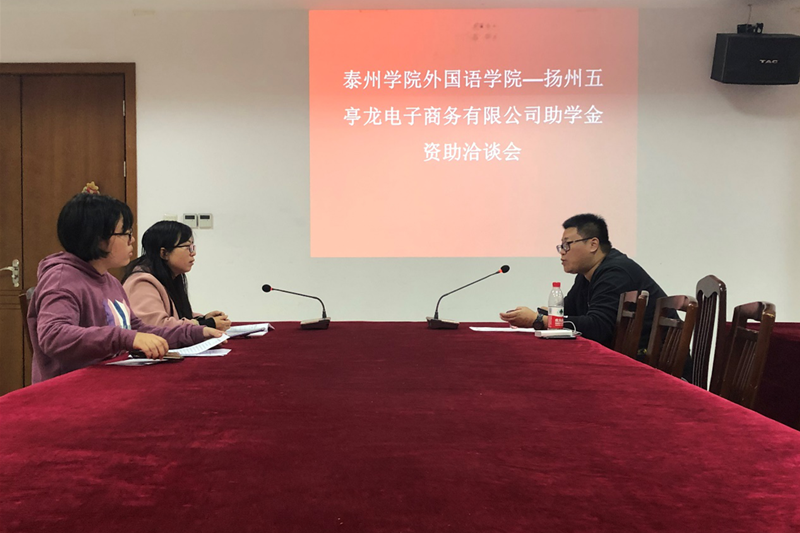 官小燕对LETOU国际米兰官网目前贫困认定学生人数、学生家庭情况和学习成绩等方面进行了简单的介绍,感谢扬州五亭龙电子商务有限公司对学院资助工作的支持和帮助。接着双方就资助金额、资助学生评选条件、双方责任等方面展开讨论,并签订社会助学协议书。(LETOU国际米兰官网)