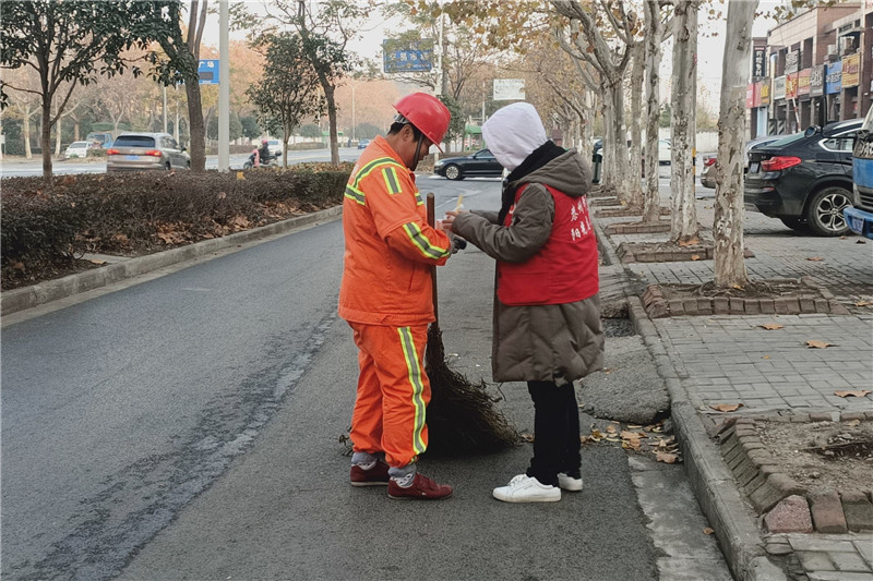 为进一步弘扬雷锋精神,向社会奉献一片爱心,12月7日,医药与化学化工学院开展“暖冬志愿服务活动”,为寒冬中默默无闻、辛勤劳动的环卫工人送去一份温暖。