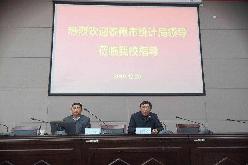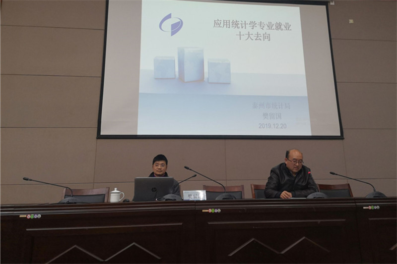 12月20日下午,米兰官网邀请泰州市统计局副局长戴国平和综合处处长樊留国在行政楼D1216会议室为数理学院师生进行专业指导。校党委常委、副校长张曙光,数理学院院长沈荣鑫、副院长陈小平,应用统计学专业师生参加了此次交流。