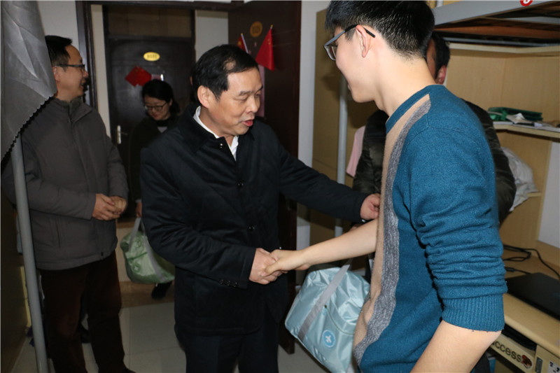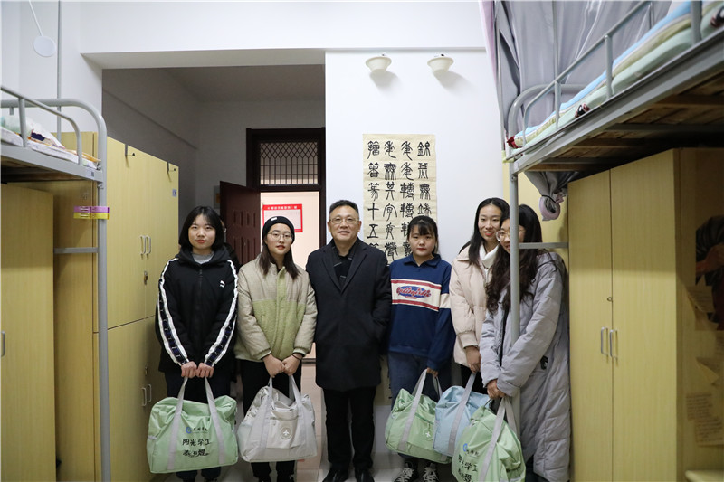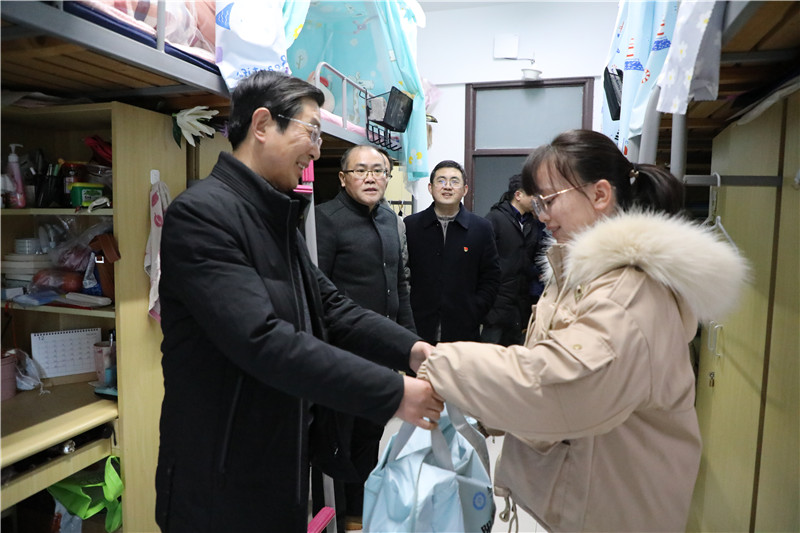 2019年12月27日-2020年1月6日,校党委书记赵茂程,党委副书记、校长徐向明等校领导分别前往联系学院学生宿舍看望家庭经济困难学生,并为他们送去了保温杯、养生茶、热水袋、毛毯等御寒用品。