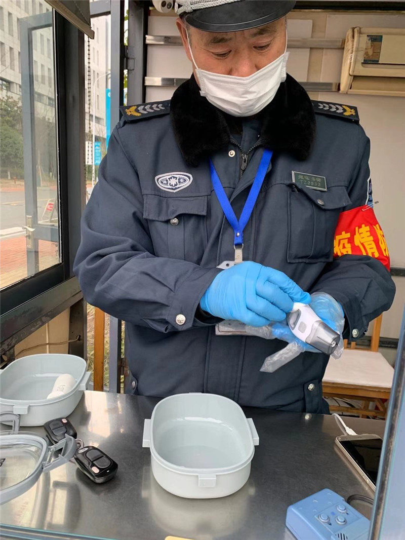 严格过程管理,防范疫情输入 一是加强校门人员出入管理,对入校人员按要求做好登记和体温测量工作,禁止外来人员进出校园。安全保卫组每天对门岗的登记情况进行督查和检查,检查登记信息是否完整,有无体温超过37.5℃,是否有感冒、发热、干咳等异常情况,检查入校人员、保安人员及其家庭成员近期是否曾赴湖北、武汉旅行或在疫区停留,近期是否曾接触来自湖北省、武汉市人员,近期是否与确诊或疑似病例者接触等情况。二是摸底调查校内常驻单位工作人员情况,做到底数清情况明。安全保卫组采取不见面措施与高教园区相关部门联系,对高教后勤值班人员情况、创业园、超市及其他出租经营场所工作人员进行了登记,进一步明确防疫情控期间相关场所不得营业,相关工作人员不得入校等要求。三是定期做好值班场所和额温枪消毒工作。北门岗亭是防疫前哨,每天早、中、晚对值班场所消毒一次。每次测温结束额温枪放置在专用存放盒内,每隔两小时用酒精棉对额温枪进行消毒,如测温时不小心与被测人员皮肤发生出触碰,立即对接触部位进行消毒,进一步做好消毒防范工作。(保卫处)