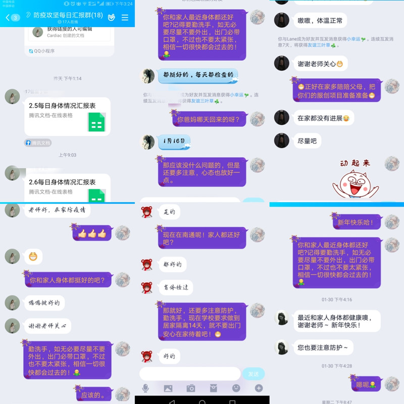 学院党政领导高度重视,第一时间对寒假期间的疫情防控进行安排部署。要求全院师生切实提高政治站位,充分认识当前疫情防控形势,坚持把师生生命安全和身体健康放在第一位,把疫情防控作为当前最重要的工作,全面动员,全面部署,坚定不移把各项防控工作要求落到实处。强化各自责任,准确掌握教职工和学生情况,每天做好疫情信息报送工作,要求师生做到14天居家自主隔离,落实好“日报告、零报告”制度。