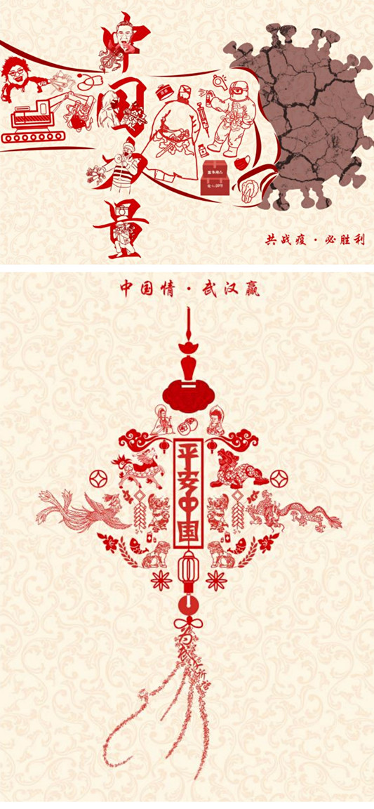 师生通过自己的作品向战“疫”前线的人民致敬,用拳拳赤诚之心为战“疫”助力,引导人们坚定信心、科学防治,共同打赢这场疫情防控阻击战!(宣传部 美术学院)
