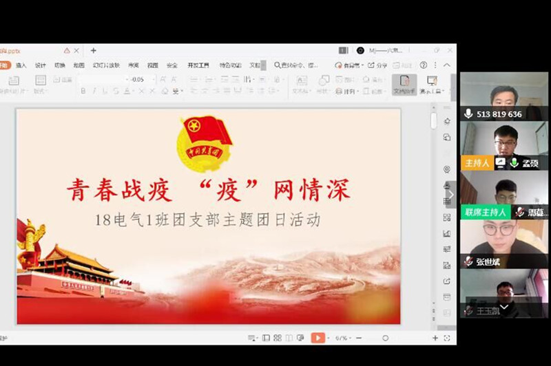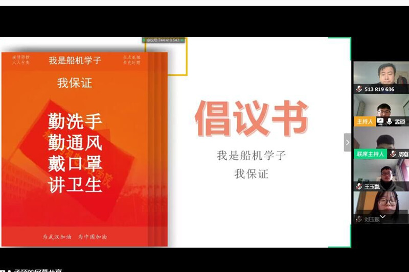 为深入学习贯彻习近平总书记关于疫情防控工作的重要指示精神,进一步推进学校新冠病毒肺炎疫情防控工作,3月10日下午,校党委副书记、副校长王美林“走进”所联系的18电气1班,与船机学院党总支书记崔昌玺一起参加线上主题团日活动。