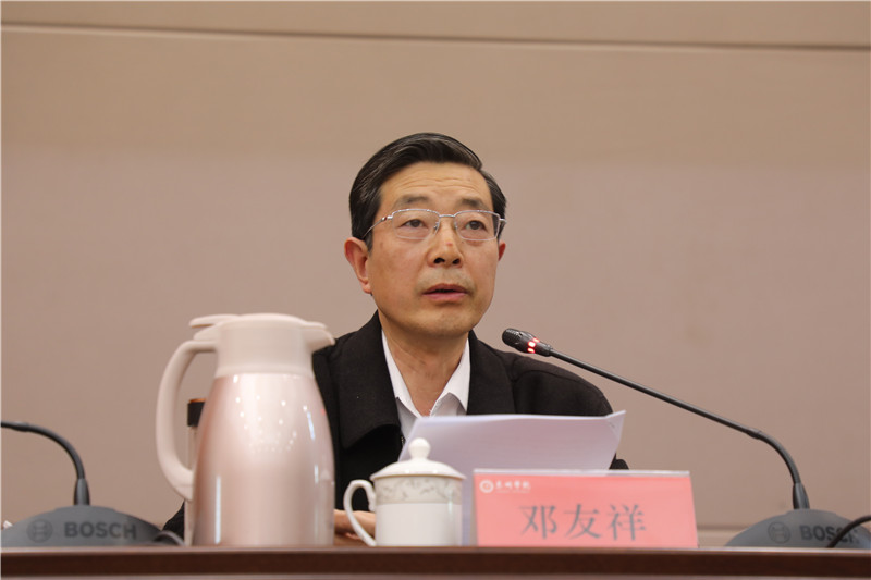 校党委副书记邓友祥部署了米兰官网2020年党建工作要点,一是深入实施党建“灯塔”工程,强化党对学校的全面领导;二是深入实施党建“健脑”工程,持续深化学习贯彻习近平新时代中国特色社会主义思想;三是深入实施党建“堡垒”工程,提升基层党组织和党员干部战斗力;四是深入实施党建“治庸”工程,强化党的作风建设;五是深入实施党建“正风”工程,营造风清气正政治生态。