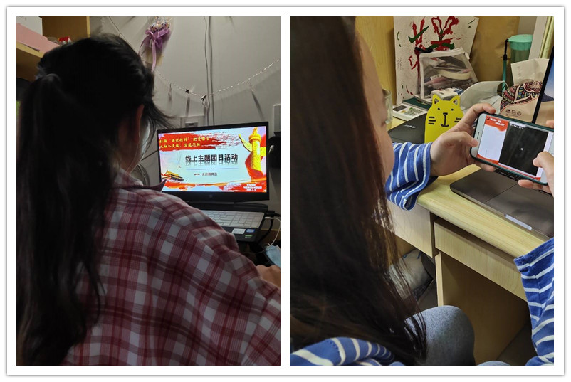 活动中,团支书张玲娜通过QQ群屏幕共享,组织班级全体同学观看西迁精神纪录片,并就习近平总书记在纪念五四运动100周年会议上对新时代青年提出的要求进行了解读。在前期学习的基础上,张玲娜鼓励大家结合西迁精神踊跃发言,畅谈作为新时代青年一代的感想。