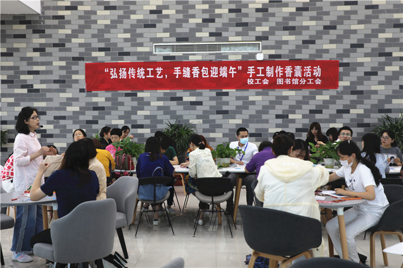 为传承历史文化,让教职工们感受端午节传统习俗,丰富米兰官网教职工业余文化生活,校工会于6月23日下午在图书馆二楼举办了手工制作香囊活动,活动共吸引近60名教职工报名参加。校党委副书记、副校长王美林亲临现场为教职工加油。