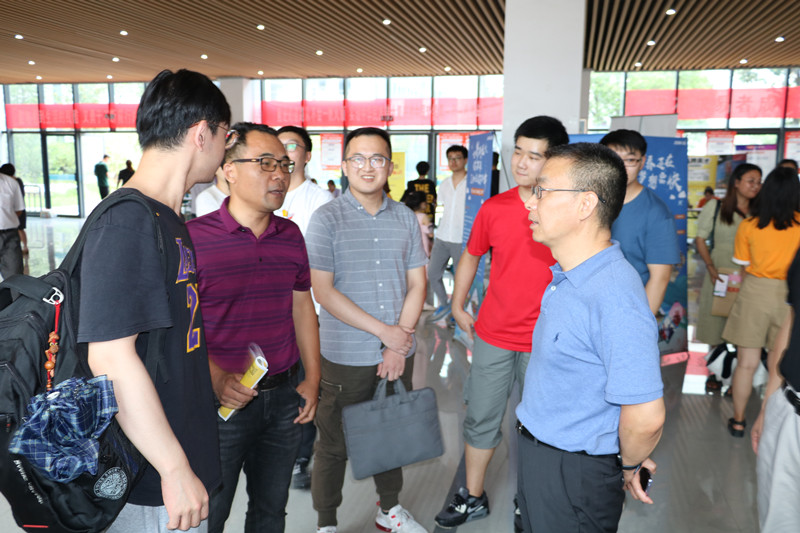 7月13日下午,米兰官网2020届毕业生“暖心送岗”精准帮扶校园招聘会在教学楼中厅举办。党委常委、副校长鲁学军到场了解企业招聘和毕业生参会应聘情况,指导招聘会组织和服务工作。