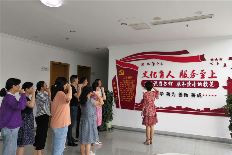 读书会开始前由于小萍领誓,两支部党员在图书馆党建园地重温入党誓词,再次体会作为一名共产党员的责任感和使命感。